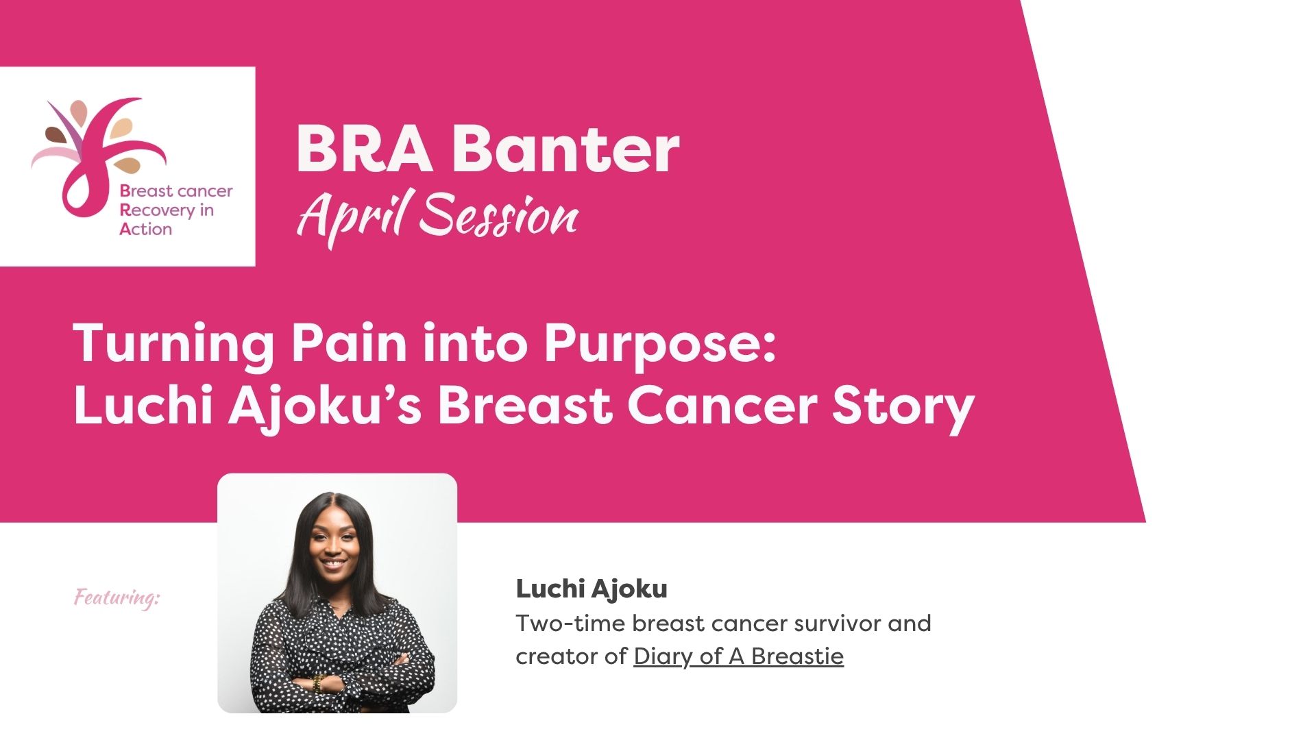 Don’t miss an intimate recorded discussion with Luchi Ajoku, two-time breast cancer survivor and creator of Diary of A Breastie. Luchi shares the highs and lows of her journey, the lessons that kept her fighting, and what she has learned about the power of storytelling. In her own words, Luchi says, “before breast cancer, I was living but after breast cancer, I'm alive.” This is a must-listen for anyone seeking courage, community, and actionable support. Watch the session on April 15 and be encouraged by a fellow survivor who turned her pain into purpose.
